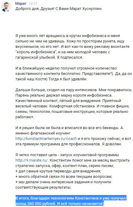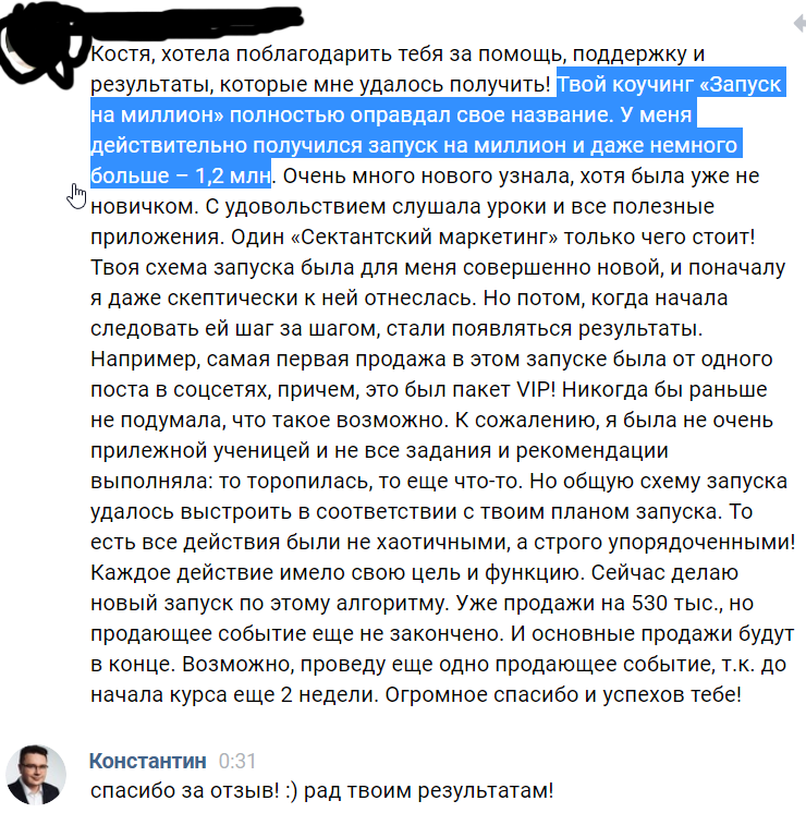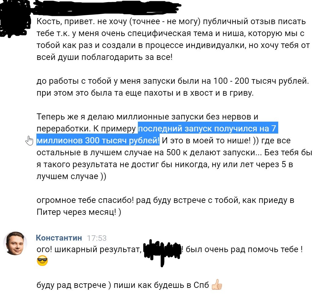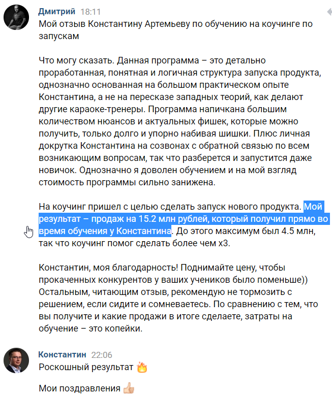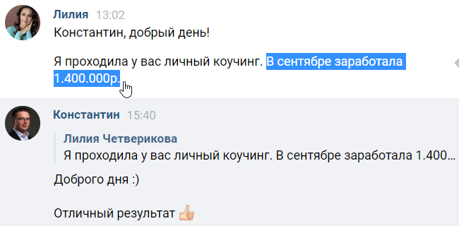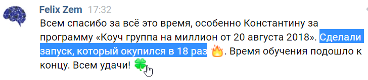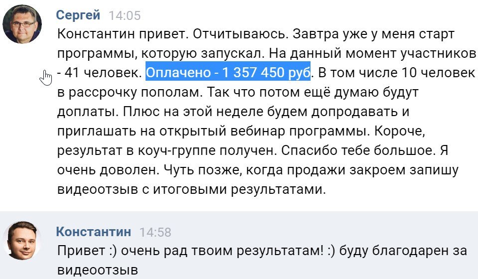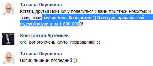 Результат: Продажа ультрадорогого личного коучинга за 1 миллион 690 тысяч рублей! Это, кстати, рекорд в нашем коучинге за 1 продажу!